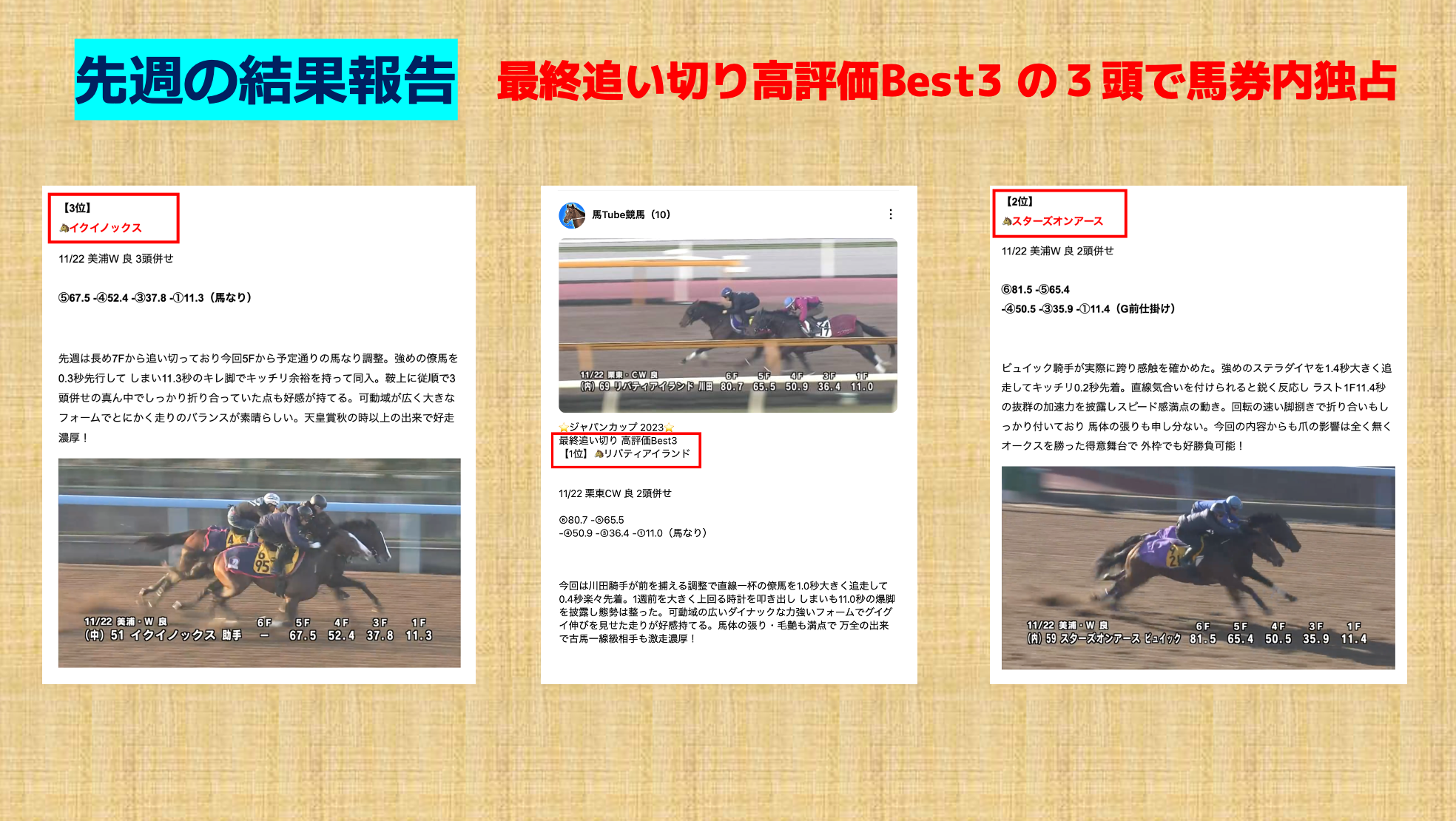 なんと推奨した高評価馬3頭 全頭で馬券内を独占🔥