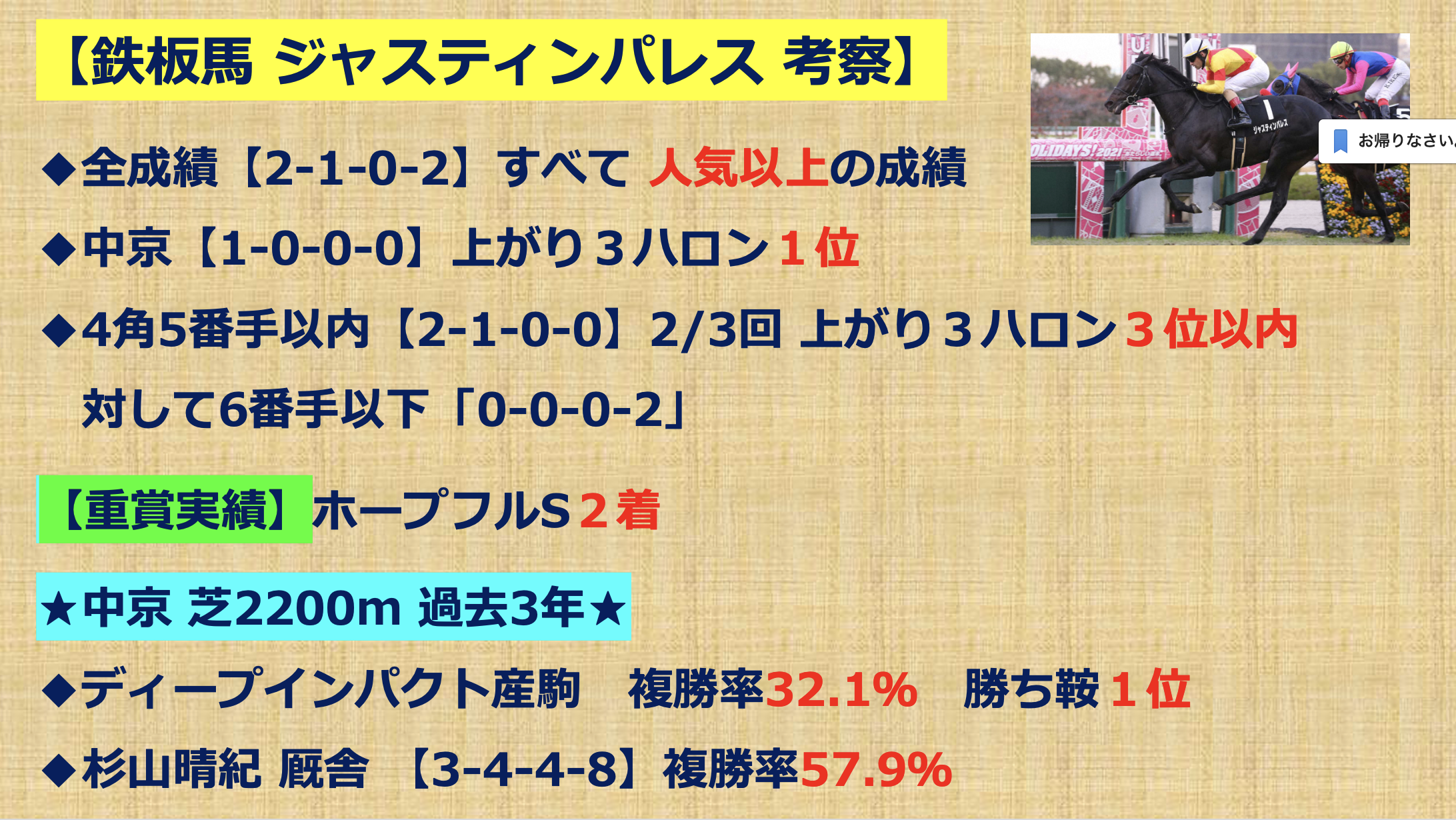 【鉄板馬】ジャスティンパレス