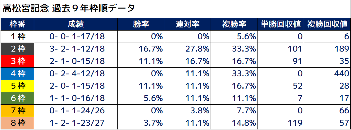 【過去9年 枠順データ】