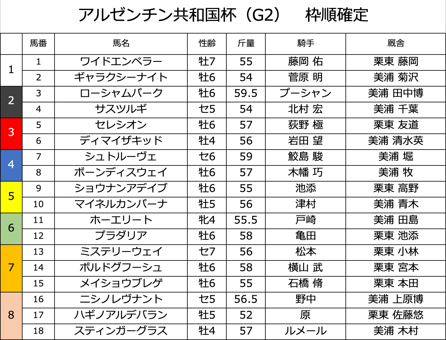 たった今 枠順が確定しました😊