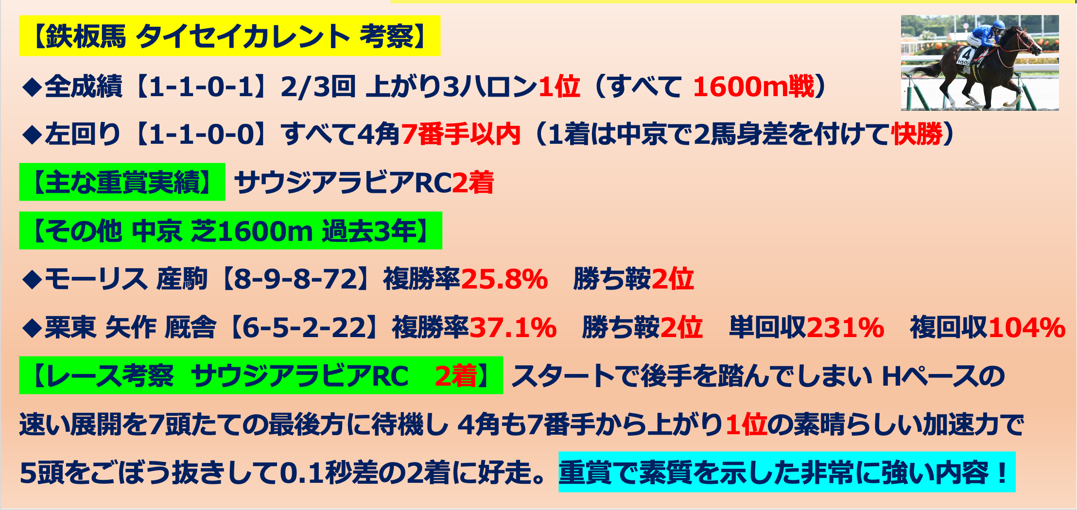 【鉄板馬推奨】タイセイカレント