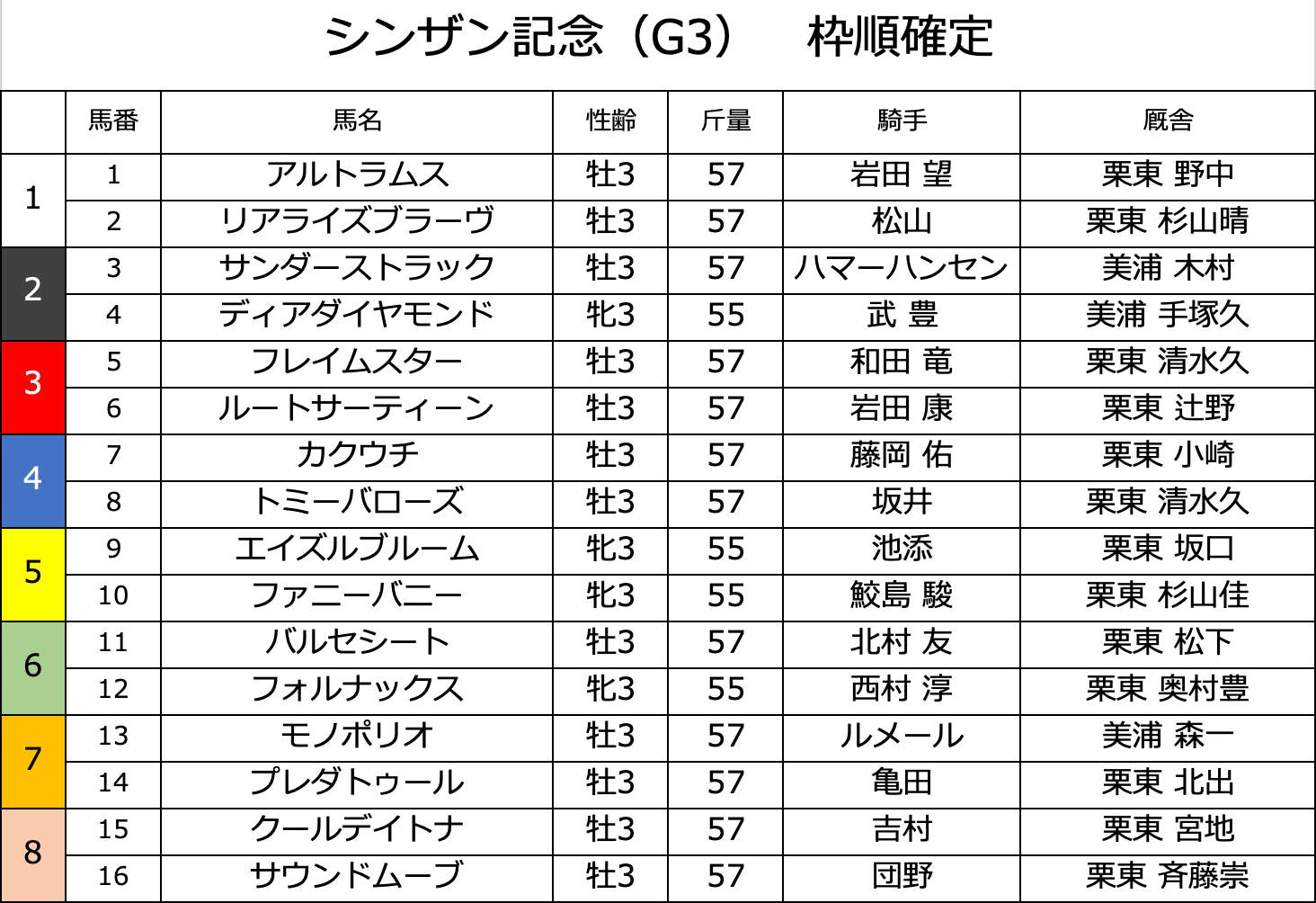 シンザン記念 2026【枠順確定】
