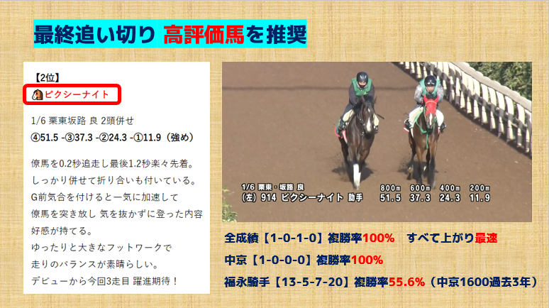 ピクシーナイトを推奨馬に抜擢!