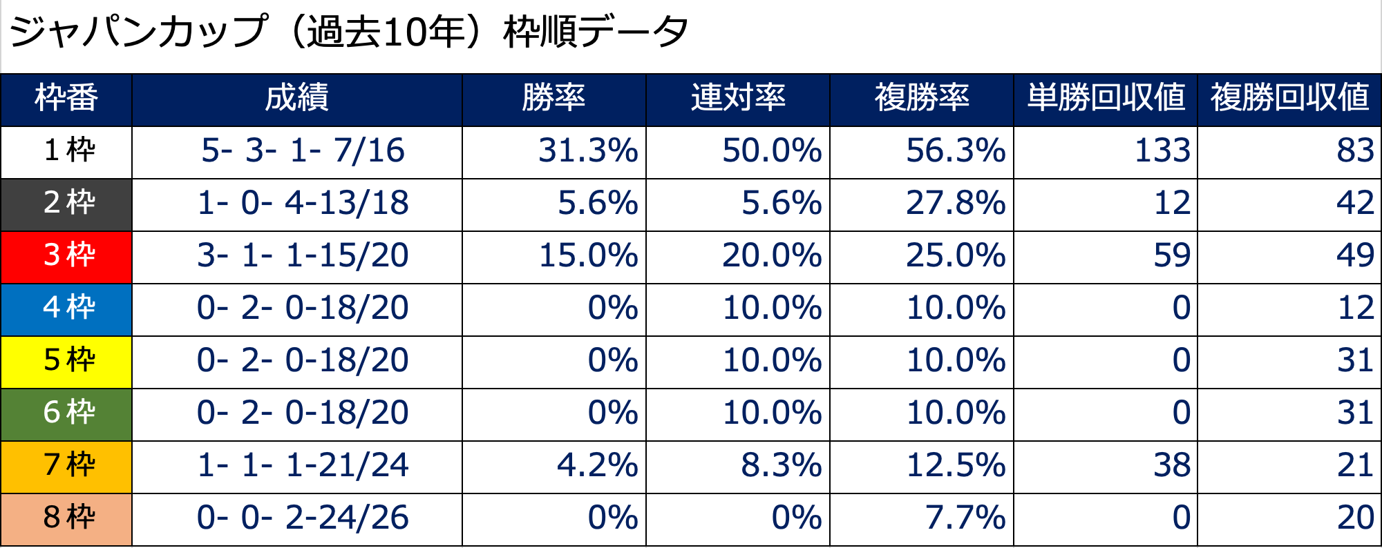 【過去10年 枠順データ】
