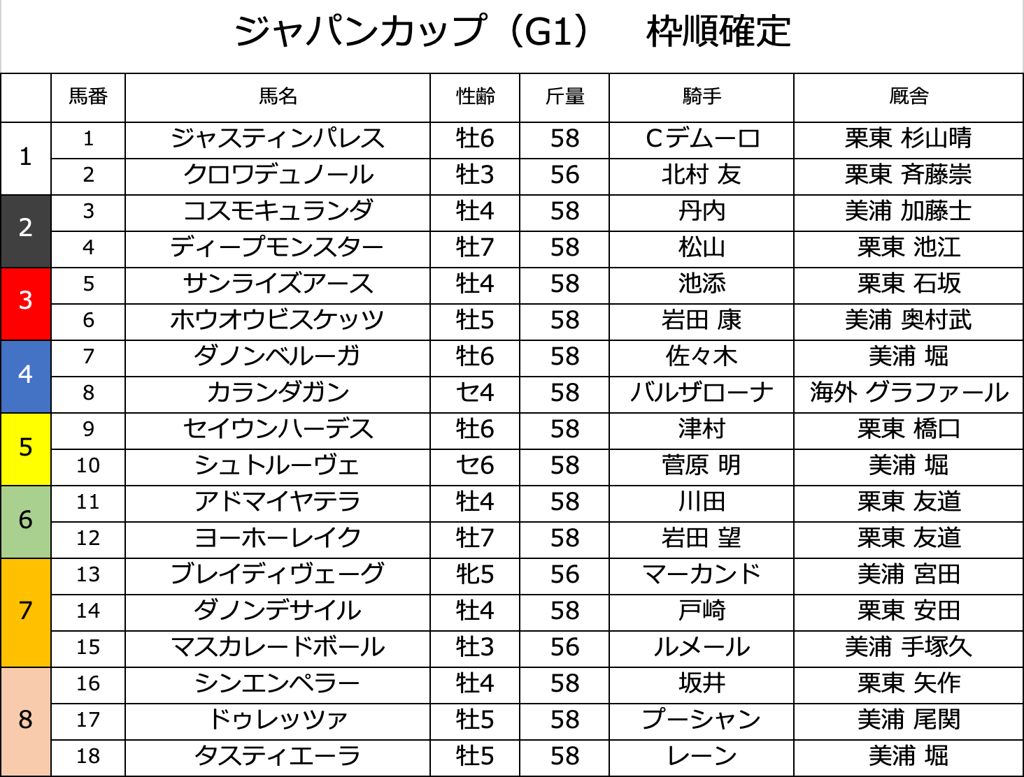 たった今 枠順が確定しました😊