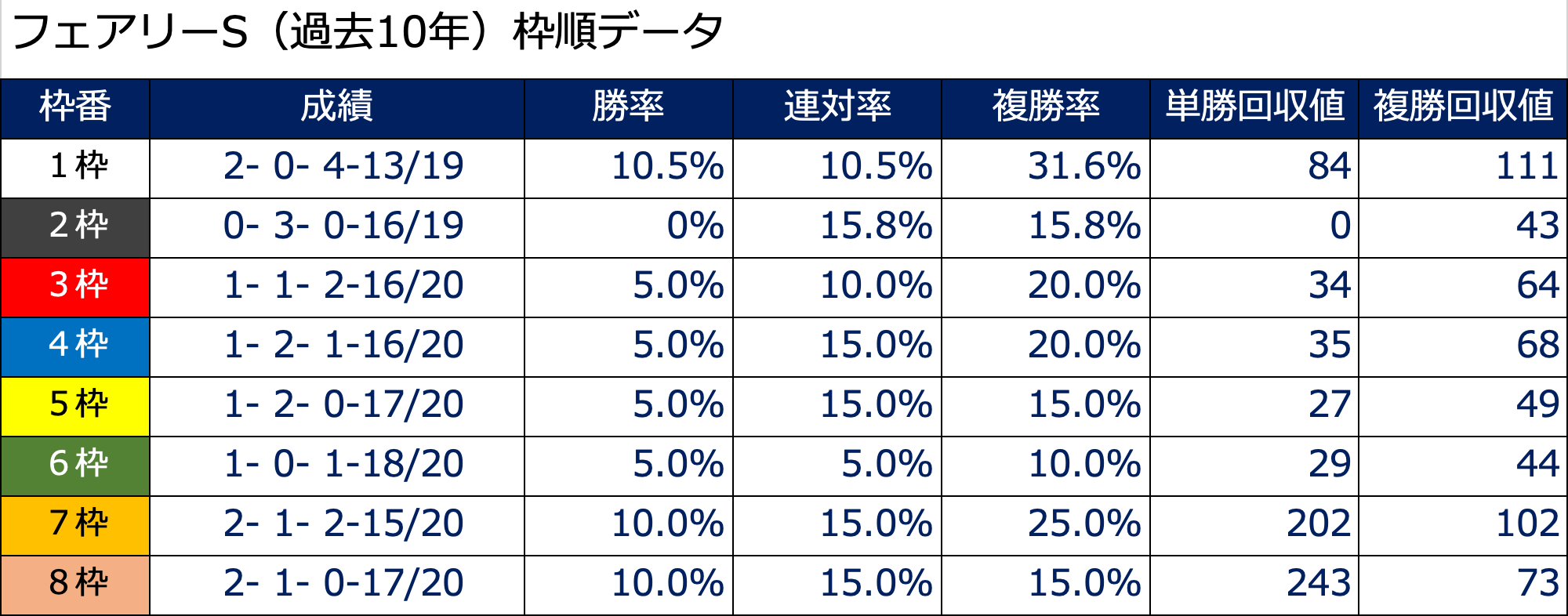 【過去10年 枠順データ】