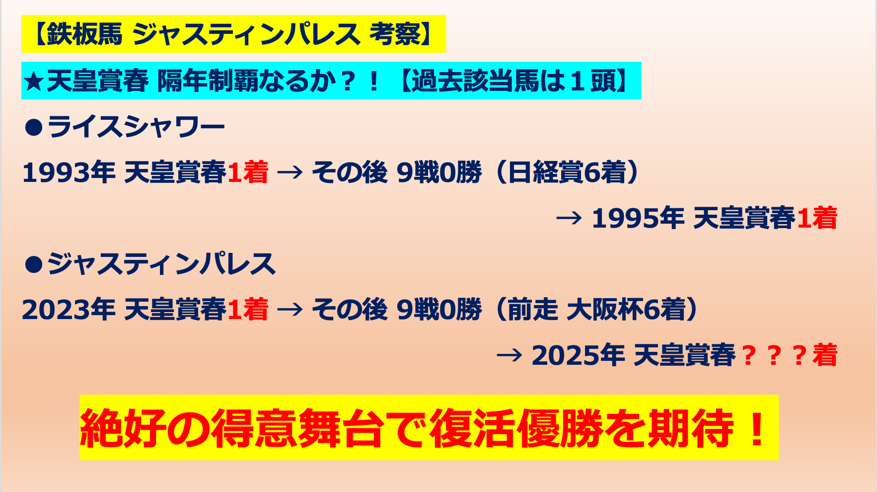 【鉄板馬推奨】〜ジャスティンパレス