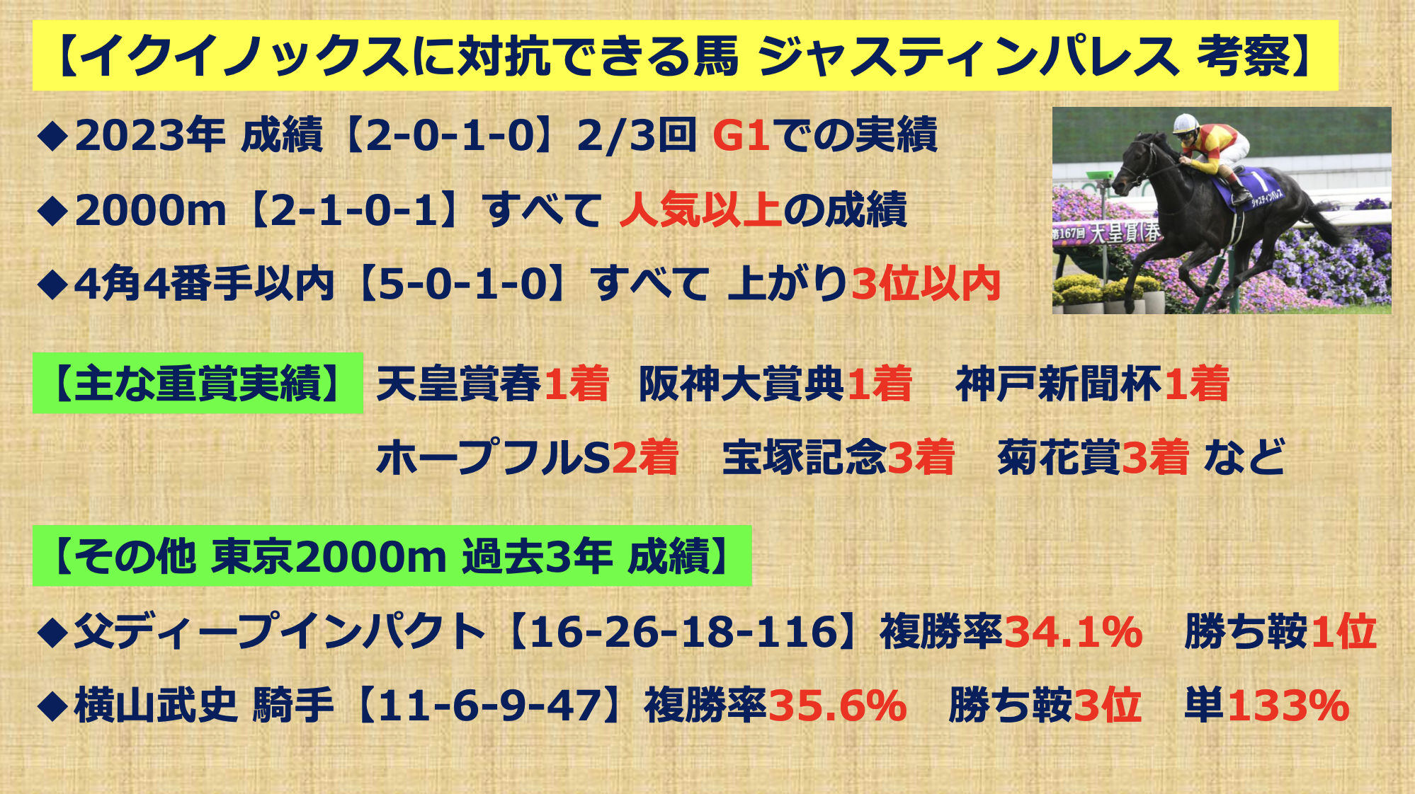 【対抗推奨馬】〜ジャスティンパレス