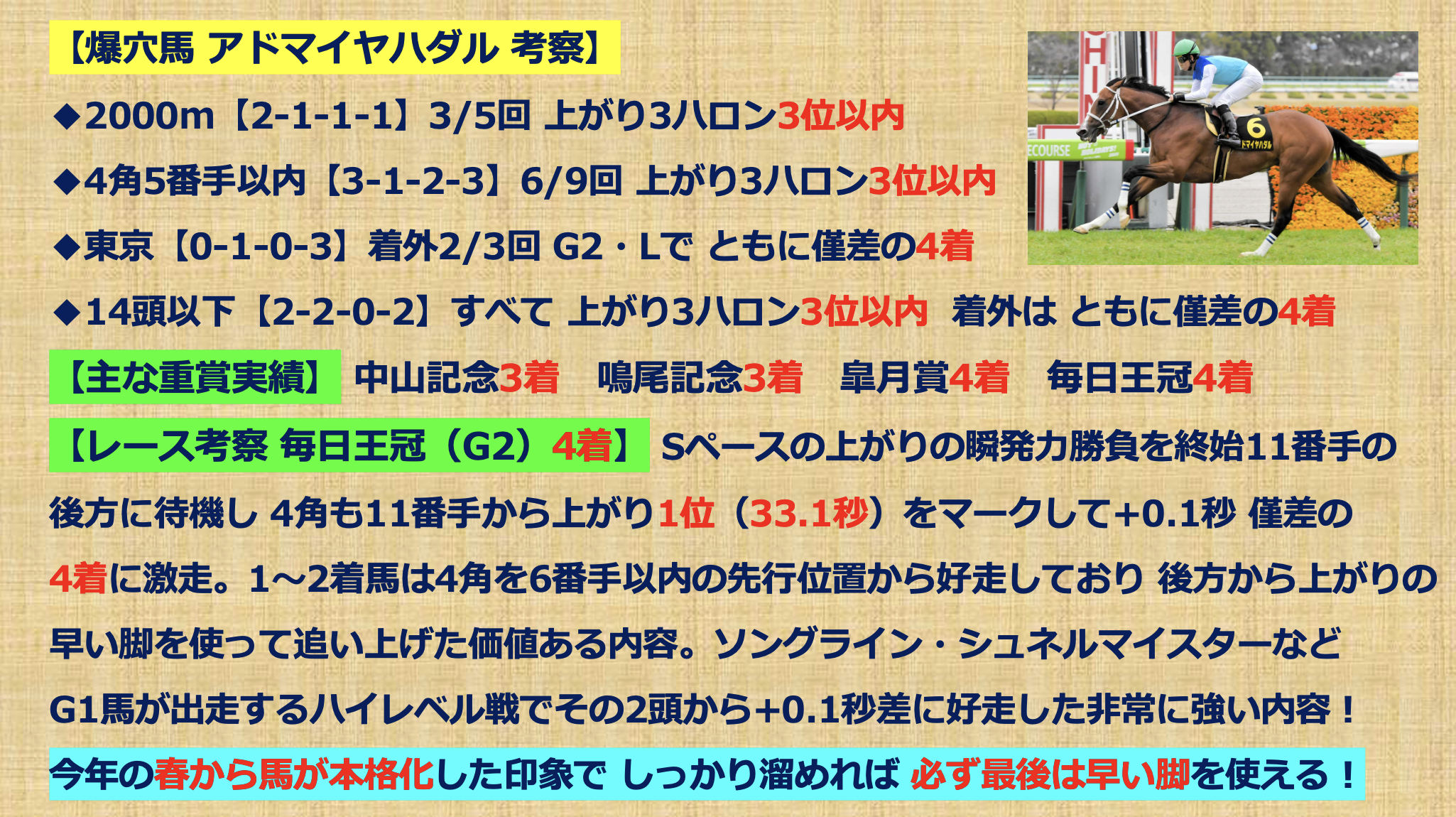【爆穴馬推奨】~アドマイヤハダル