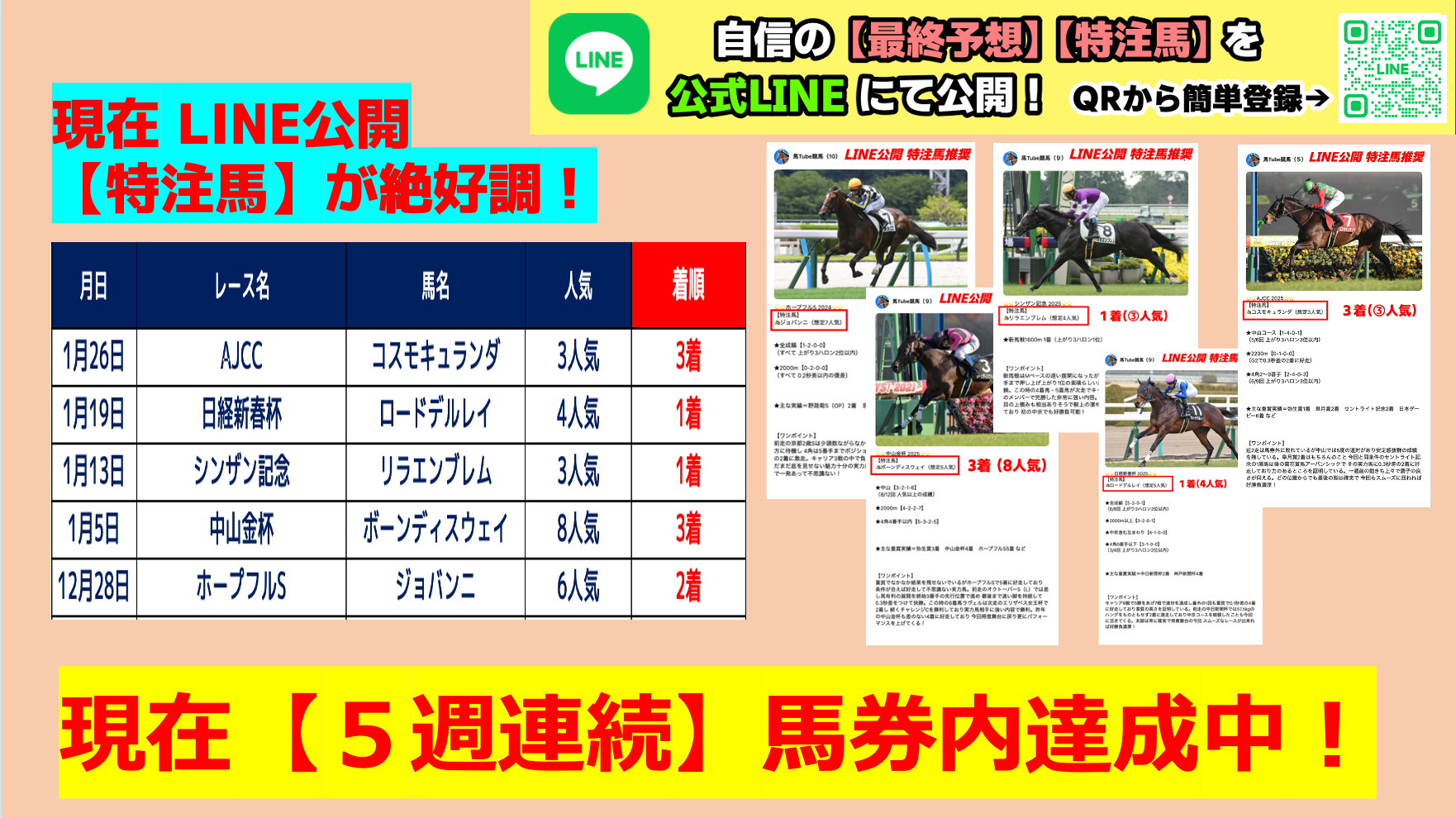 現在5週連続 馬券内を記録中!