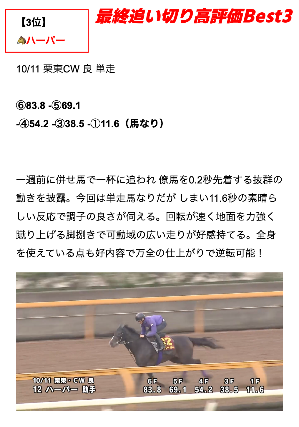 最終追い切り【高評価 Best3】