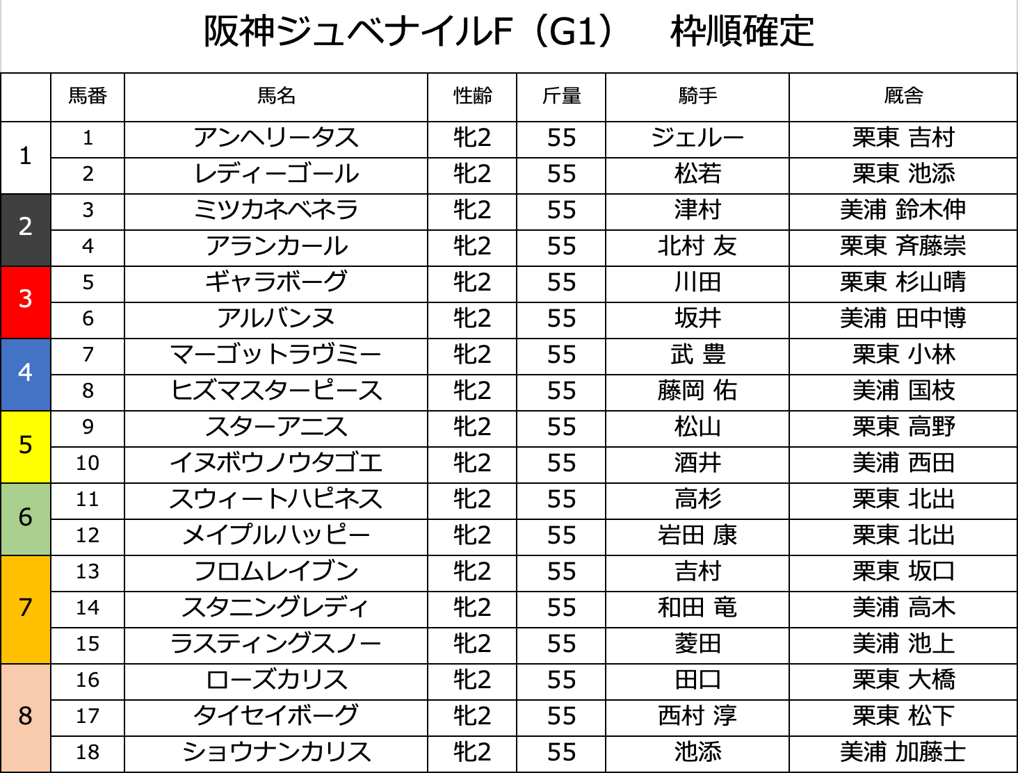 たった今 枠順が確定しました😊