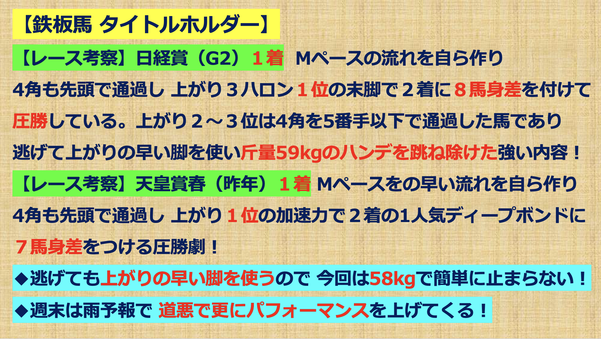 【鉄板馬】を決めております!