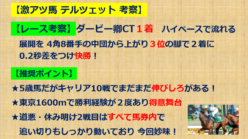 激アツ穴馬】~テルツェット