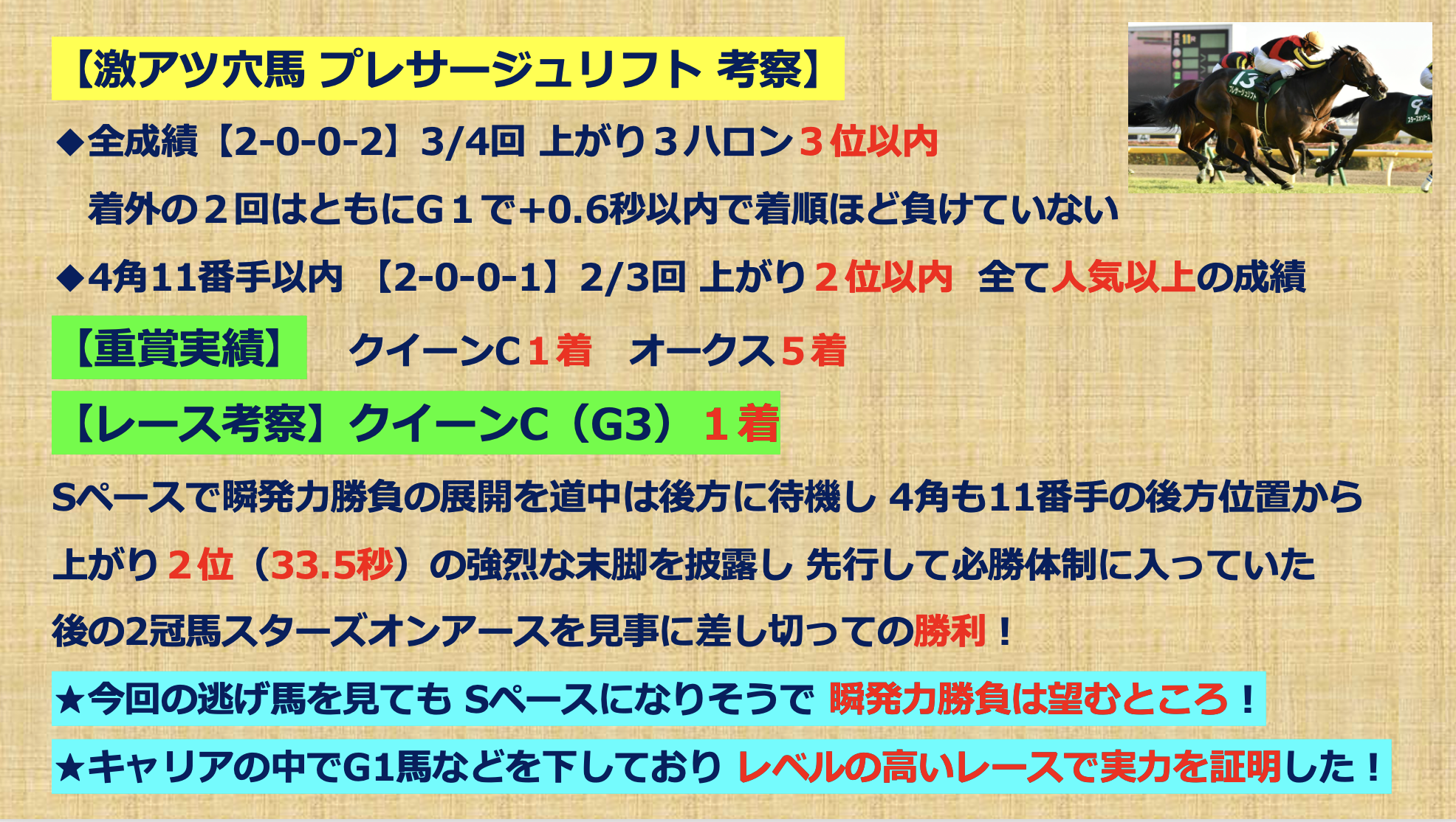 【激アツ穴馬】~プレサージュリフト