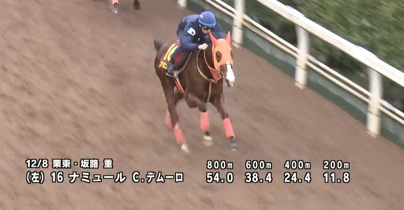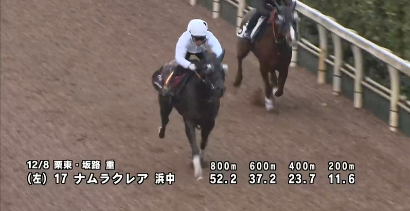 一杯の僚馬を0.7秒追走し 0.8秒